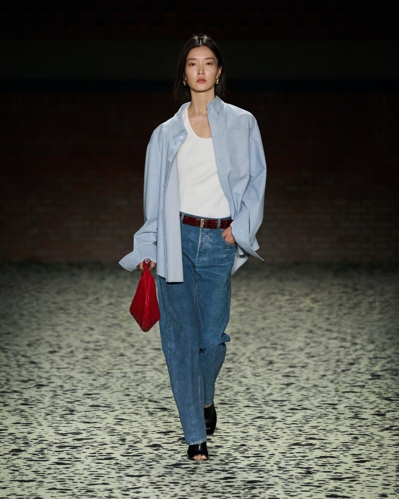 在米兰秋冬的大秀上为Bottega Veneta大秀压轴的大表姐刘雯,这次在北京为秀开场,不变的是这次刘雯依旧是抱着大尺寸的Andiamo手袋上场,而杜鹃则是以白上衣、牛仔裤外搭浅蓝色衬衫,为这场精彩绝伦的秀画上句点。