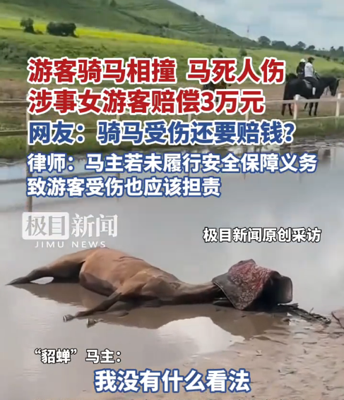 信息来源:《游客骑马相撞马死人伤,马主人:游客已赔马钱,市场价4万元》河南经济报